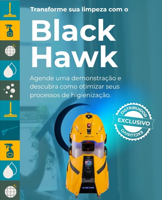 O Black Hawk é um equipamento revolucionário que utiliza apenas água de torneira e energia elétrica para gerar vapor a 175°C. Com isso, solubiliza sujeiras e elimina micro-organismos, oferecendo uma limpeza profunda e eficiente.